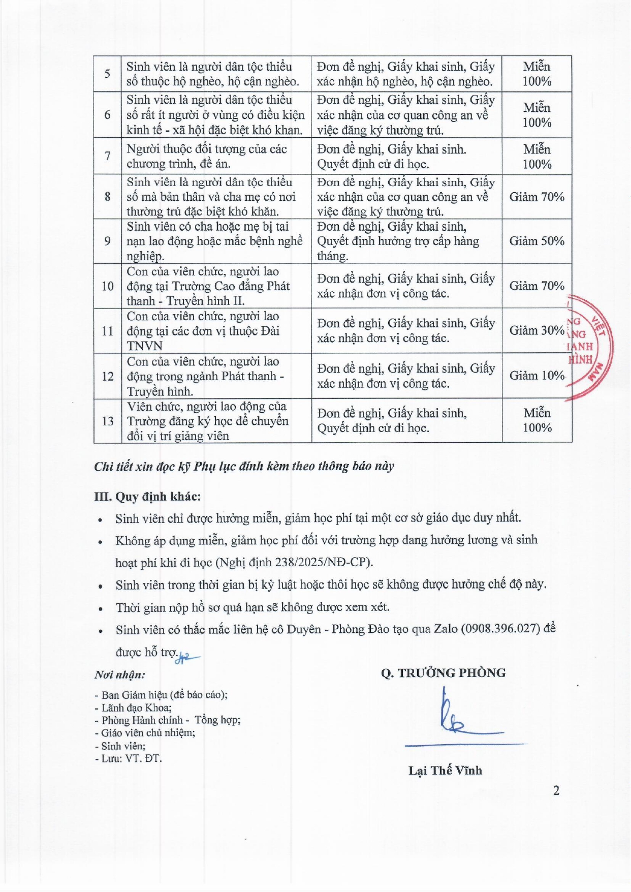 Thông báo số về việc nộp hồ sơ miễn, giảm học phí học kỳ I năm học 2025 - 2026
