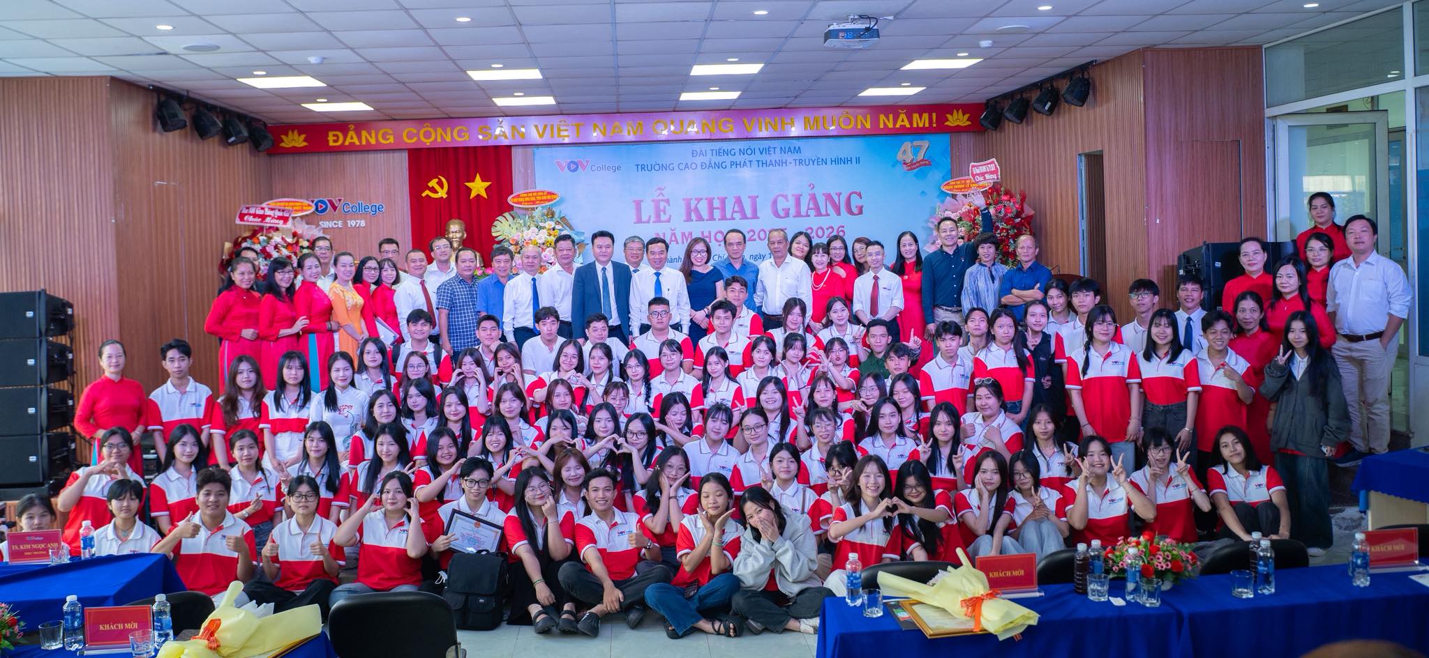 Sáng ngày 12 tháng 9 năm 2025, trong không khí trang nghiêm của những ngày mùa thu lịch sử, Trường Cao đẳng Phát thanh – Truyền hình II (VOV College) đã long trọng tổ chức Lễ khai giảng năm học mới 2025-2026 tại Hội trường Cơ sở 2.