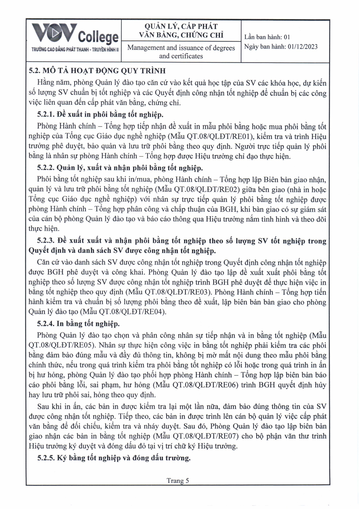 Quy trình quản lý, cấp phát văn bằng, chứng chỉ (Tải về)