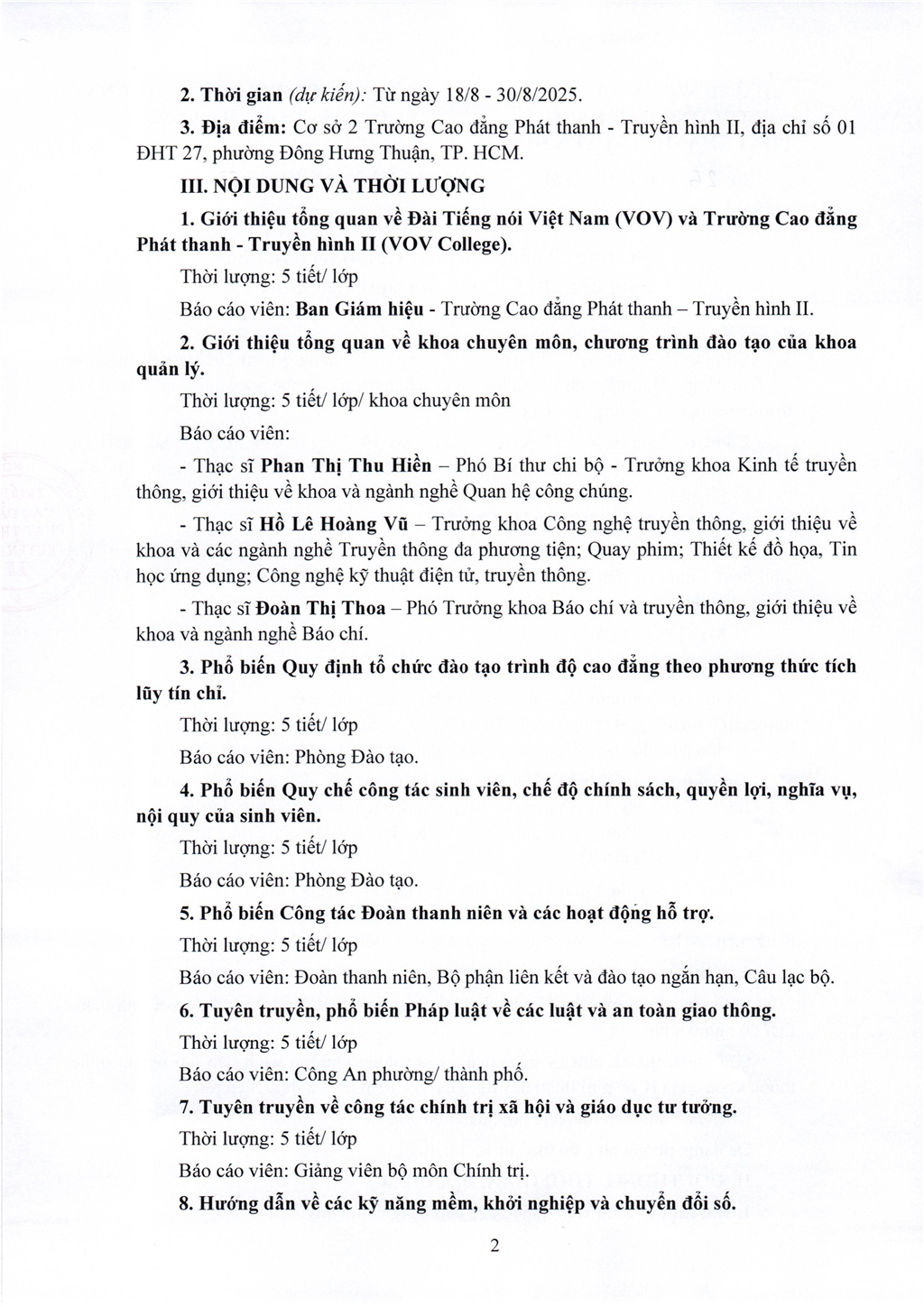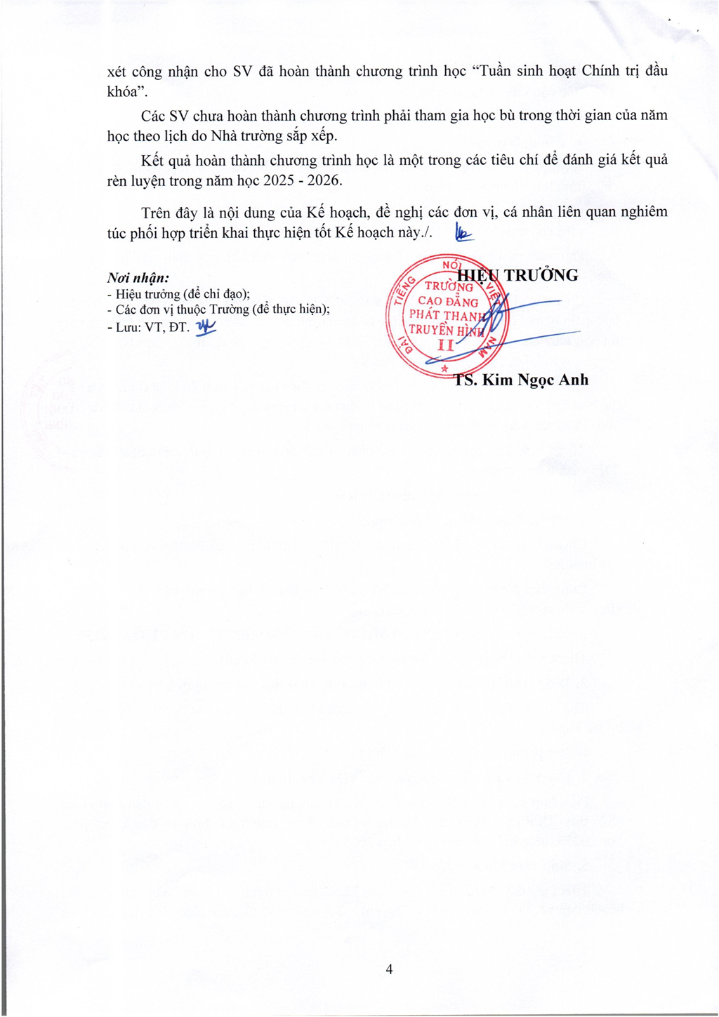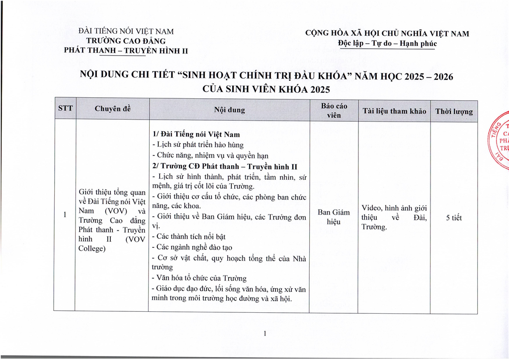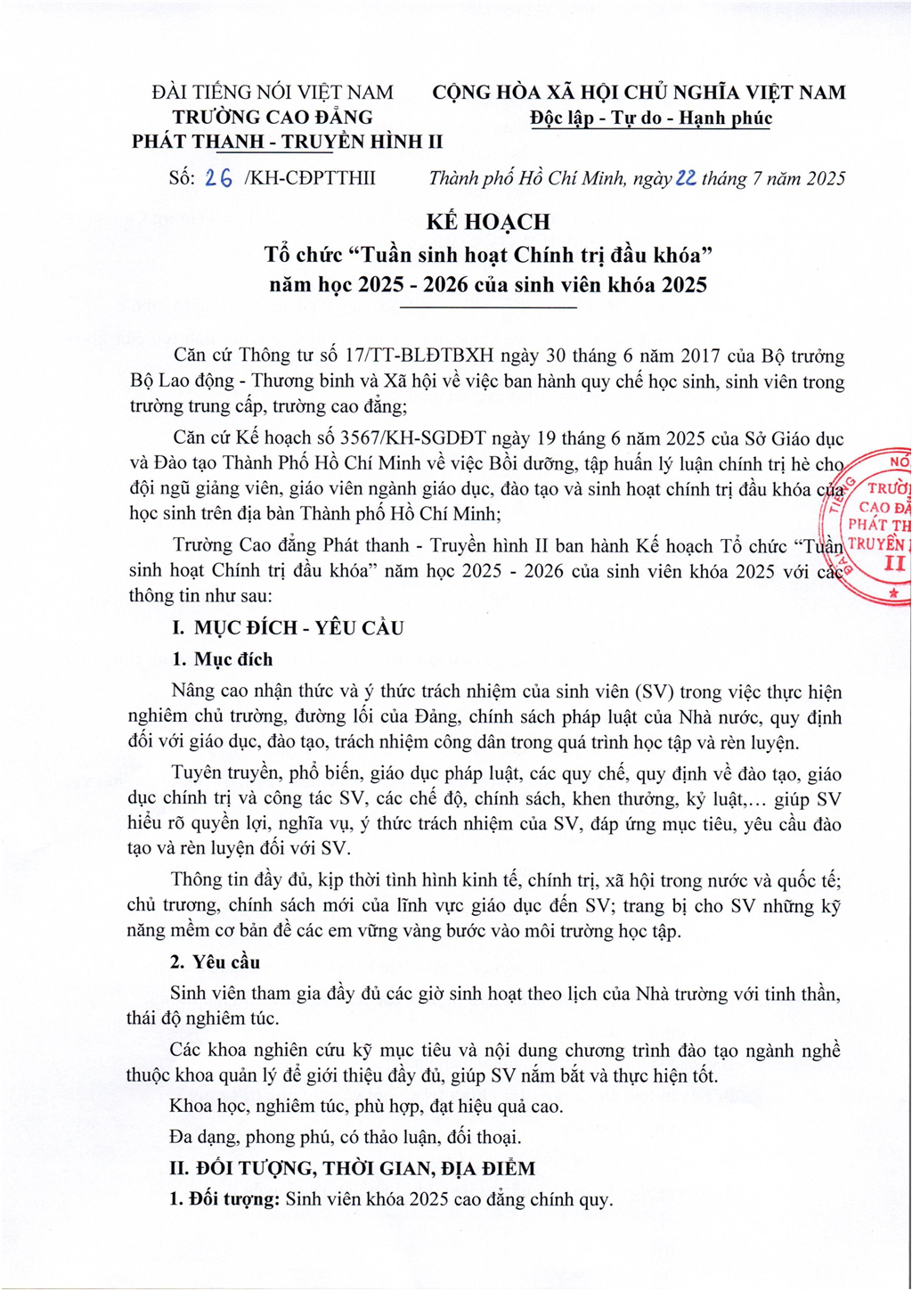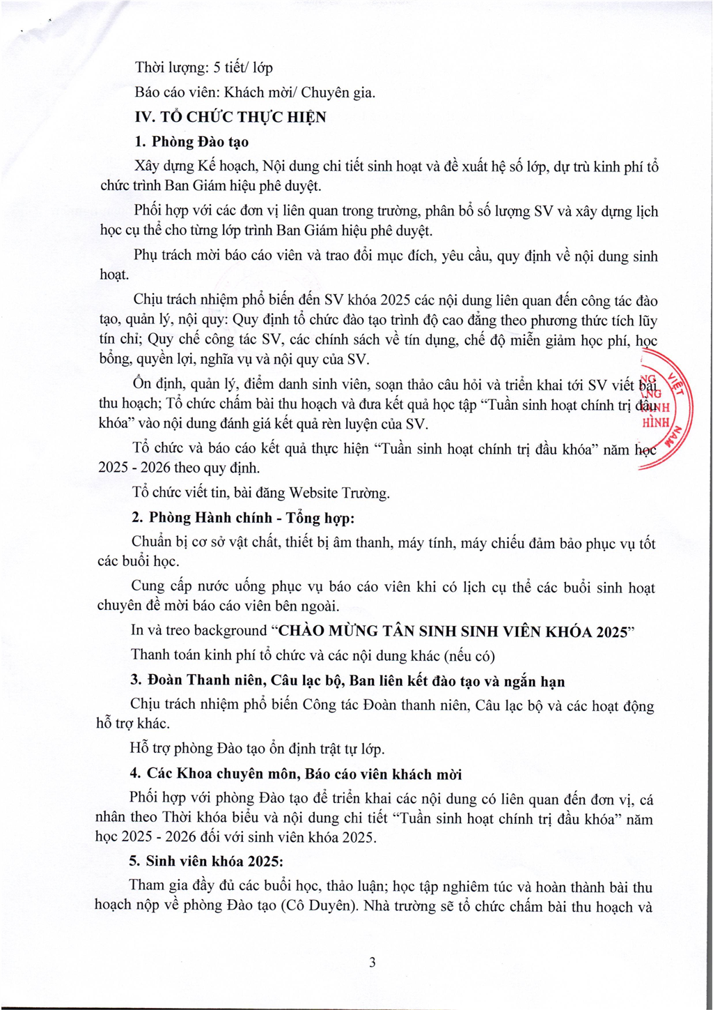 Kế hoạch tổ chức “Tuần sinh hoạt Chính trị đầu khóa" năm học 2025 - 2026 của sinh viên khóa 2025
