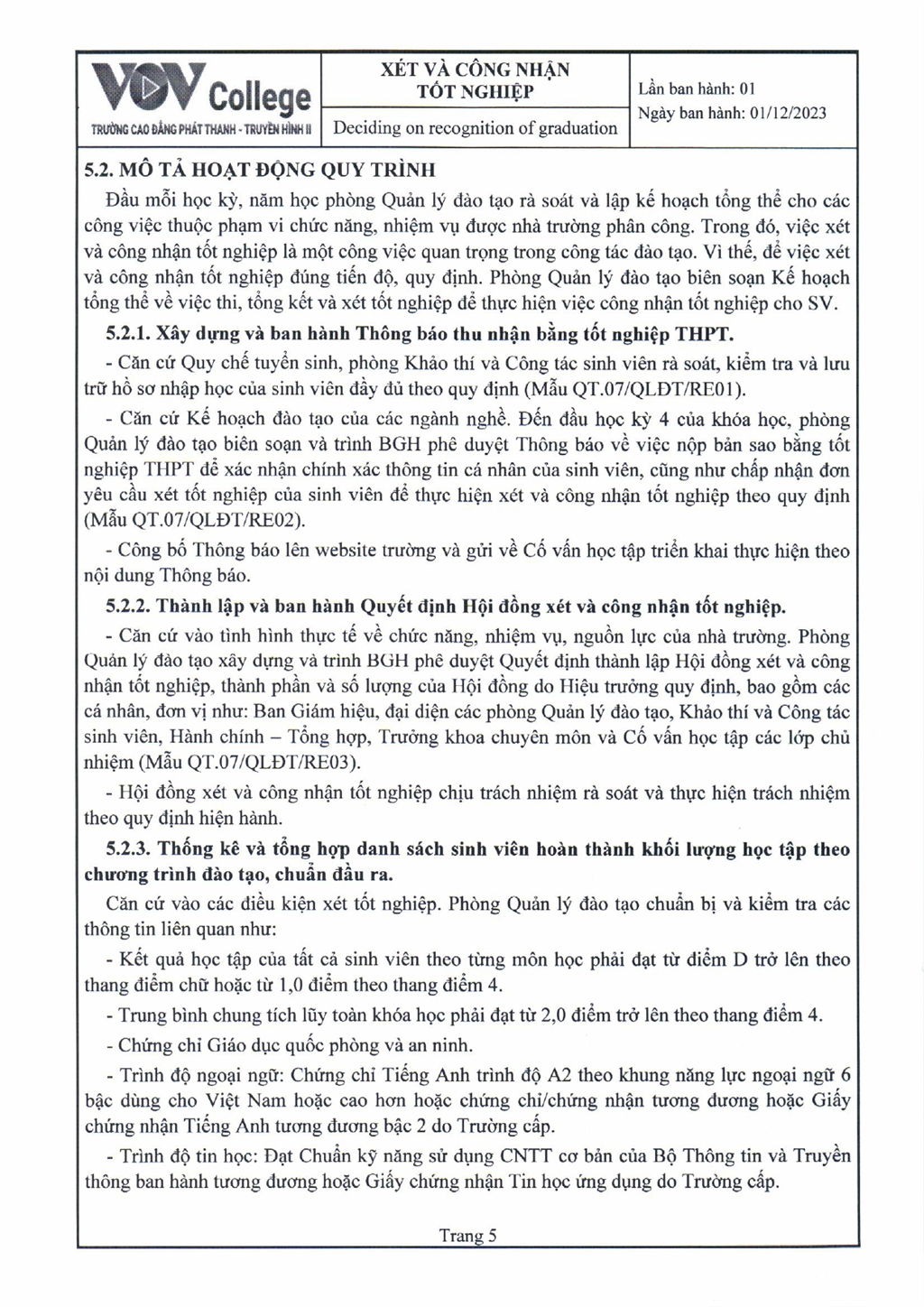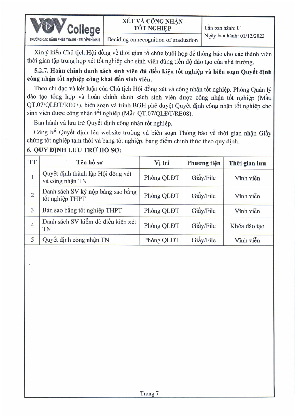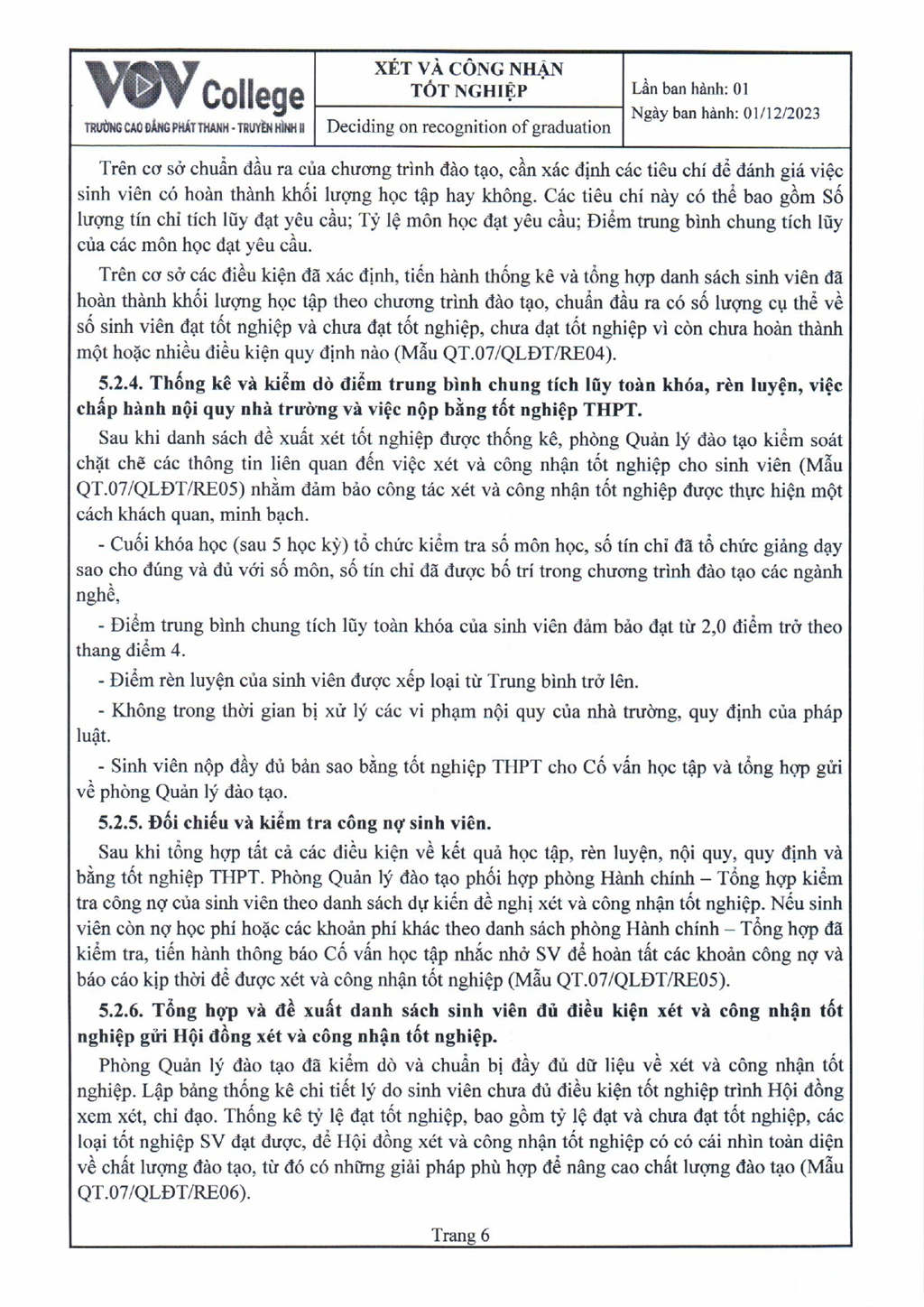 Quy trình xét và công nhận tốt nghiệp (Tải về)